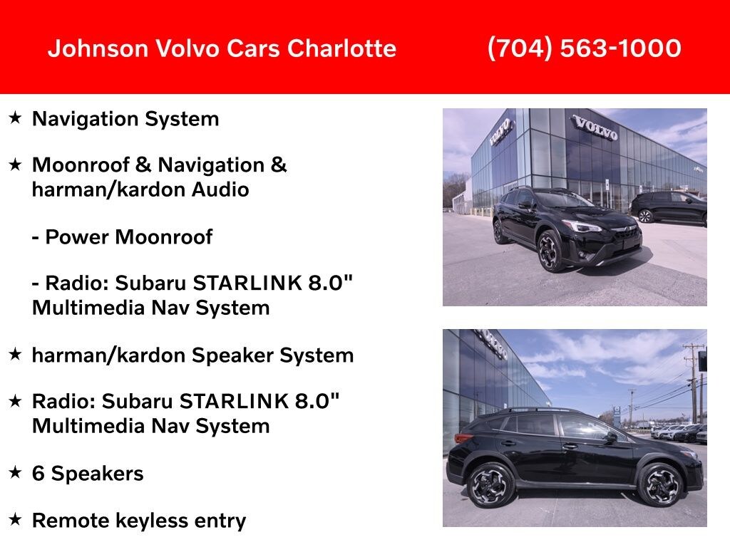 6 Speakers, Auto-Dimming Exterior Mirror w/Approach Light, Exterior Parking Camera Rear, harman/kardon Speaker System, Heated door mirrors, Heated front seats, Moonroof & Navigation & harman/kardon Audio, Navigation System, Power Moonroof, Radio: Subaru STARLINK 8.0" Multimedia Nav System, Remote keyless entry, STARLINK/Apple CarPlay/Android Auto, Turn signal indicator mirrors, Wheels: 18" x 7.0J Alum Alloy Blk w/Machine Finish.